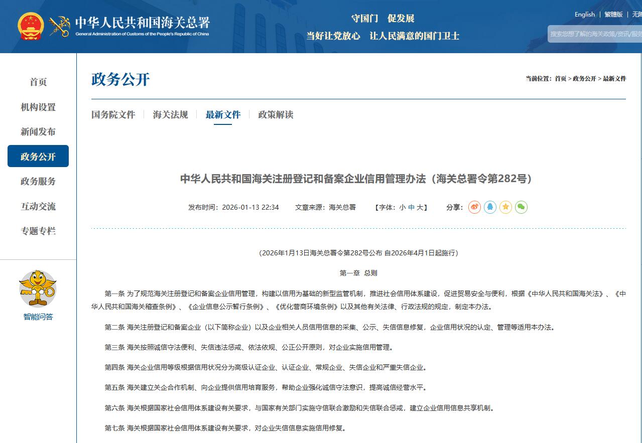 中華人民共和國海關(guān)注冊登記和備案企業(yè)信用管理辦法(海關(guān)總署令第282號)